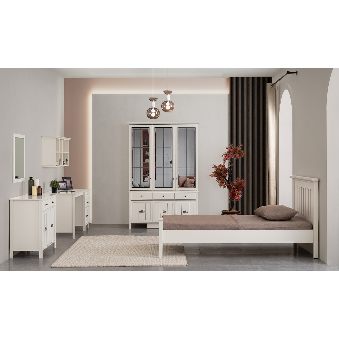 1 Adet Dolap, 1 Adet Karyola ve Başlığı, 1 Adet Komodin, 1 Adet Çalışma masasından oluşmaktadır.